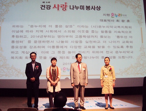 - 5회 온누리 건강사랑나누미 봉사상 수상한 최광훈 약사
