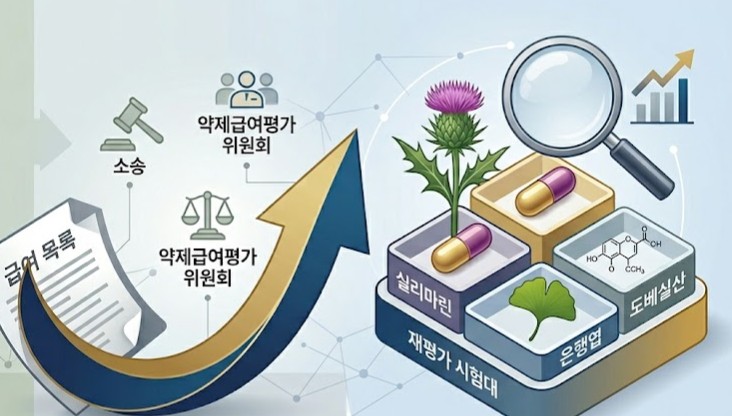 지난 2021년 급여 재평가 결과에 불복해 소송까지 진행했던 '실리마린(밀크씨슬 추출물)' 성분이 결국 다시 한 번 시험대에 오른다. 기존 급여재평가 품목이었던 은행엽, 도베실산 등과 함께 올해 대상 품목에 포함될 예정이다.6일 업계에 따르면, 최근 심평원 약제급여평가위원회에서 실리마린 성분을 재평가 품목으로 추가하는 안건이 논의됐다.실리마린은 지난 2021년 ▲빌베리건조엑스 ▲아보카도-소야 등과 함께 받은 급여재평가에서 적정성이 없다는 판단을 받은 바 있다. 그해 11월 복지부는 급여 삭제를 고시했다.제약사들은 고시 집행정지 신청과 행정소송을 제기했다. 2023년 11월 급여 삭제가 정당하다는 판단을 내렸지만, 작년 12월 항소심 재판부는 1심 결과를 뒤집으며 제약사의 손을 들어줬다. 복지부가 상고를 포기하면서 판결은 확정됐다.항소심 판결을 검토한 결과 급여적정성 재평가를 다시 실시하는 방향으로 가닥을 잡은 것으로 보인다.재판부가 임상적 유용성의 여부를 판단했다기 보다 재평가 검토 절차상의 문제점을 지적했기 때문으로 풀이된다.기존에 올해 급여재평가 품목으로 논의됐던 성분은 은행엽엑스, 도베실산칼슘수화물 등 7개다. 은행엽과 도베실산을 제외한 일부 품목 중에는 변동이 있는 것으로 알려졌다. 지난 1월 약평위에 급여재평가 대상 품목 안건이 상정됐지만 아직 건정심 의결은 되지 않은 상황이다.일반적으로 급여재평가 항목은 약평위 상정 직후 건정심에서 의결되지만 급여재평가 기준 변경 등을 포함한 약가제도 개편을 이유로 지연되고 있다.3월 건정심에서 약가제도 개편안이 확정됐기 때문에 이달 건정심 상정을 예상하고 있다.또 내년 재평가 품목은 아직 불투명하다. 약가제도 개편으로 급여재평가가 시기가 매년에서 필요 시로 달라졌기 때문에 2027년 품목 결정은 더 지켜봐야 하는 상황이다.