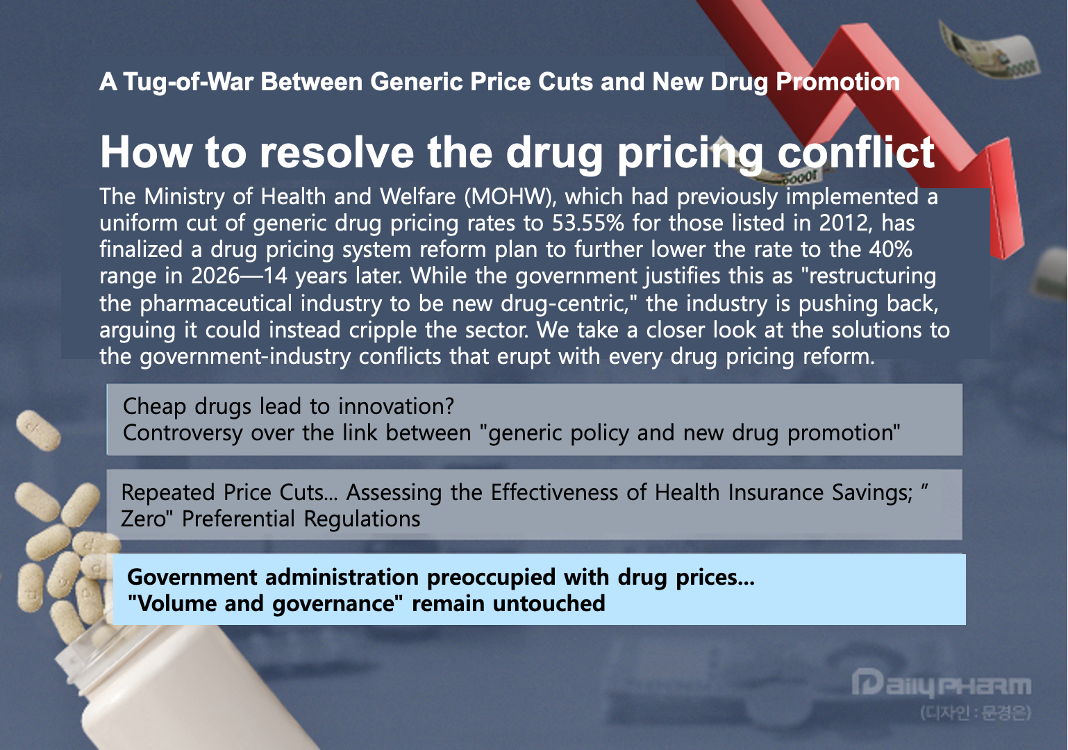 If not handled carefully, this could lead to a worst-case scenario where the price cut creates an environment in which generics of lower quality than in the past are produced, while at the same time, some companies intensify their efforts to offer illegal rebates to increase prescription volumes in an attempt to mitigate the shock of price cuts.
