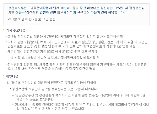 오는 5월 30일 시행을 앞두고 있는 '정신건강증진 및 정신질환자 복지서비스 지원에 관한 법률(이하 개정 #정신보건법)이 또 말썽이다.