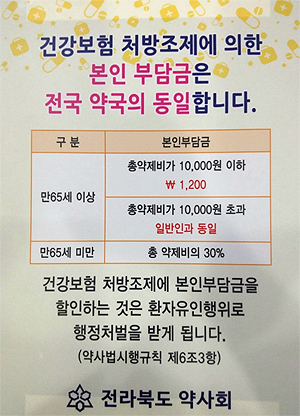 전북약사회는 지난해 포스터를 제작·배포해 본인부담금 할인 행위는 명백한 불법행위라는 점을 환자들에게 알리고, 개국약사들이 쉽게 안내할 수 있도록 했다.