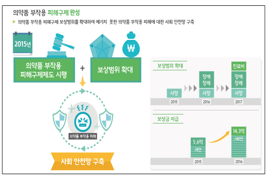 ◆의약품 피해구제 완성=피해구제 사업의 지급 대상을 기존 사망, 장애·장례에서 진료비까지 확대한다. 또 의약품 부작용 피해구제 신청자의 편의성과 지급 과정의 투명성을 높이기 위해 '부작용 피해구제 시스템'을 활용해 온라인 접수부터 급여결정까지 원스톱으로 관리한다.