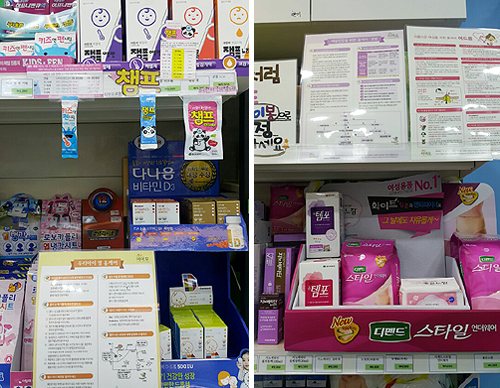 예를 들어 어린이 해열제 코네에는 어여모의 '우리아이 열케어' 설명문을, 임산부 영양제 코너에는 '어여모 약사님과 상담하세요. 임산부 종합영양제' 설명문을 배치하는 것이다.
