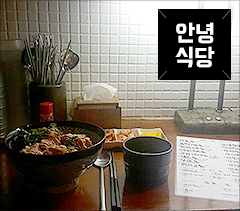 인테리어가 혼밥에 특화돼 있었다. 양념통, 젓가락, 곁반찬 등을 놓아두는 진열대가 일종의 칸막이 역할을 하고 옆으로 늘어져 앉는 방식의 테이블은 혼밥하는 이들의 시선처리를 돕기에 충분했다.