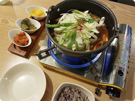 기본 닭도리탕이 들어간 A세트를 주문했다. 닭고기는 한 번 삶아져 나와 탕이 끓자마자 먹을 수 있었다. 약 11분 정도가 걸려 패스트푸드 못지 않은 속도였다. 바쁜 시간 쪼개어 혼자 먹기에도 나쁘지 않다.