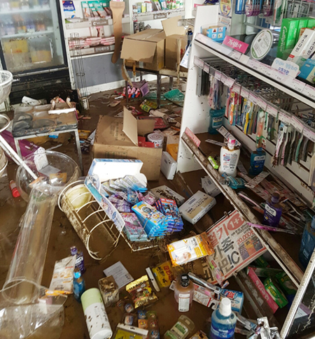 5일 오후가 되면서 비가 그치고 물은 다 빠져나갔지만 드러난 현장은 참혹한 수준. 약국 집기는 물론 의약품과 부외품 등 건질만 한 게 거의 없다시피 하다는 게 현장 설명이다.