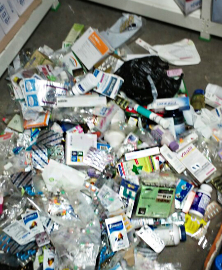 각 약국에서 모이는 폐의약품을 창고 한켠에 모으기 시작했는데, 남은 공간이 모자라 나중엔 출하를 기다리는 새 의약품과 같은 창고 한편에 까지 쌓아놓게 됐다.