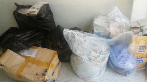 약사회관 문 안쪽 현관에도 얼마간의 폐의약품이 쌓여있는 상태. 약국마다 수시로 모아진 폐의약품을 가져오는데, 이렇게 약 3개월 가량 지나면 꽤 많은 양이 된다.