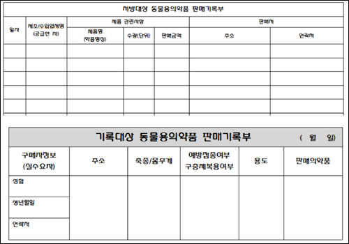처방대상 동물의약품 판매기록부를 필수로 비치해야 한다. 동물병원에서 처방전이 발행될 경우를 대비해 비치하는 것으로, 현재 병원에서 처방전이 발행되지 않는다해도 판매기록부는 약국에 비치해야한다는 게 협회 설명이다.