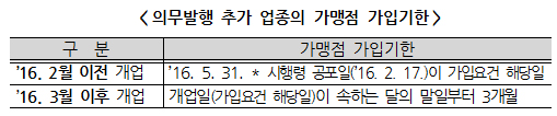 이번에 추가된 의무발행업종의 사업자는 직전년도 수입금액에 상관없이 가입요건에 해당하는 날이 속하는 달의 말일부터 3개월 이내 현금영수증가맹점에 가입해야 한다.
