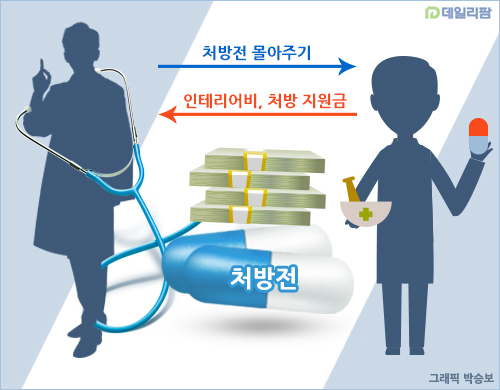 최근에는 처방전 지원금 명목으로 건당 특정 금액을 요구하는 곳도 있다. 최근에 알려진 한 병의원의 경우 독점 약국 조건으로 처방전 건당 1000~2000원까지 요구하는 것으로 확인됐다.