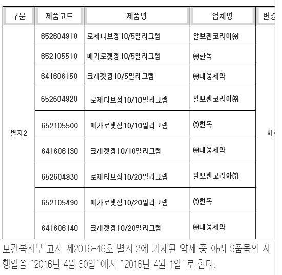 앞서 복지부는 이들 업체 품목 이외에 동아에스티 듀오논, 제일약품 로제듀오정, 유한양행 로수바미브정 등 3개 제약사 9개 품목을 오는 30일부터 급여 적용하기로 하고 약제급여목록에 반영했었다.