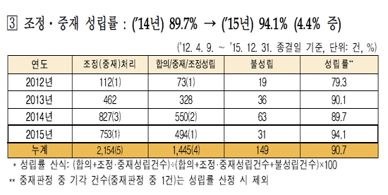 조정·중재 성립률은 같은 기간 89.7%에서 94.1%로 4.4% 증가했다. 누적 성립률은 90.7%였다.