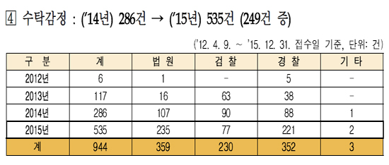 반면 조정·중재 성립률은 94%를 넘어 섰고, 법원 등 외부의뢰 수탁감정 건수는 급증했다.