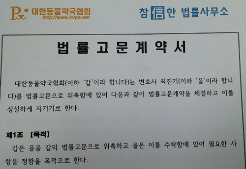 이번에 위촉된 참신한 법률사무소는 지난 한국동물테마파크 건으로 인한 명예훼손 항소심을 대행하고 있으며 협회 회원들을 위해 동물약국홈페이지 내 법률자문게시판을 무료로 운영 중이다.