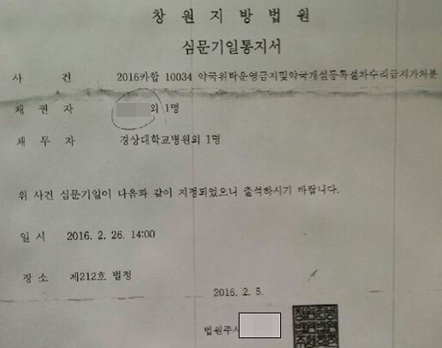 이와 관련해 A약사는 최근 창원지방법원으로부터 가처분신청과 관련한 심문기일 통지서를 발송 받았다고 밝혔다. 최초 심문 기일은 오는 26일 오후 2시다.