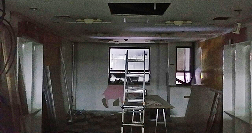 서울의 한 집합상가. 최근 해당 상가 건물 3층 한 점포는 진행 중이던 약국 인테리어 공사를 중단하고 한달여간 방치돼 있다.