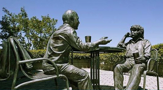 제넨텍 설립을 위해 투자자가 교수를 찾아가 읍소(?)를 하는 제넨텍 사내 조형물(사진)은 창의성을 중시하는 기업문화를 그대로 대변하는 한편, 오픈이노베이션에 대한 중요성을 일깨워준다. 지난주 데일리팜이 바이오생태계 조성을 위한 미래포럼에서 신정섭 KB인터베스트 벤처2본부 이사와 이승주 사노피 사노피 아시아태평양 연구담당 소장 등은 제넨텍 신화를 높이 평가했다.