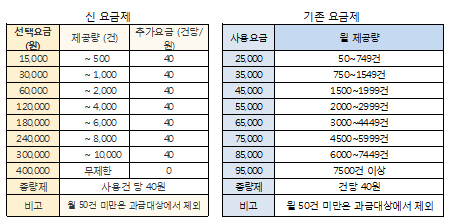 일단 2000건까지 쓸 수 있는 6만원 요금제에 가입한 뒤 추가 500건은 건당 40원씩 추가로 내야 한다.
