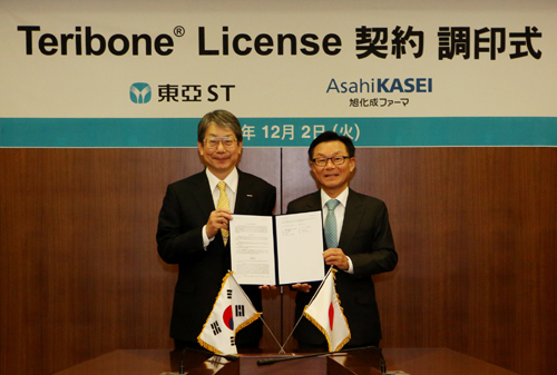 동아에스티(대표 박찬일)는 2일 일본 아사히 카세이 파마(Asahi Kasei Pharma)와 골다공증치료제 테리본(성분명 teriparatide acetate)의 국내 개발 및 독점 판매에 대한 계약을 체결했다.