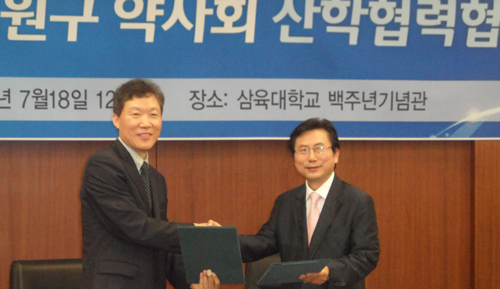 삼육대 총장실에서 진행된 이번 협약은 6년제 약대 교육에서 도입되는 약국 실무실습 정착 일환으로 진행 된 것이다.