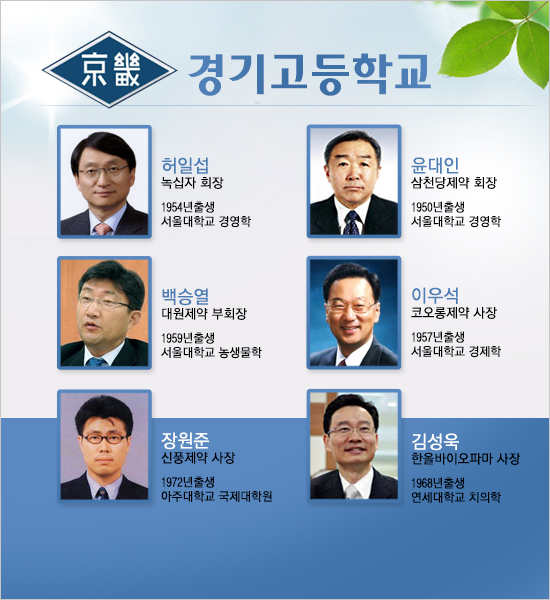 오너 2세인 72년생 장원준 신풍제약 사장도 경기고 출신이다.