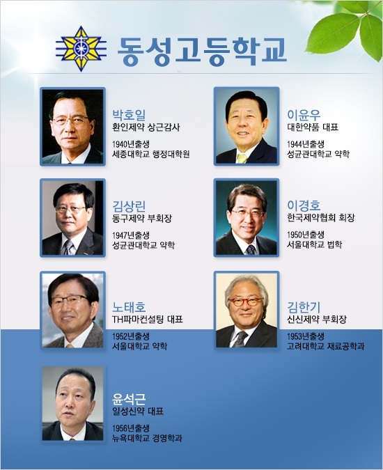이윤우 대한약품 대표와 보령제약에 오랫동안 몸담았던 김상린 동구제약 부회장도 동성고 파워라인에 포함돼 있다.