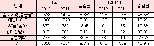 - 매출액 평균 10% 성장...매출액-유한, 영업이익-한미 최고