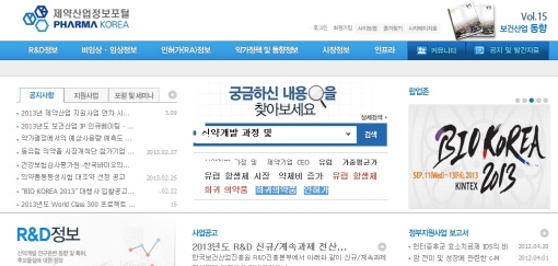 제약산업정보포탈(www.epharmakorea.or.kr)은 임상시험, 의약품 인허가, 해외시장 동향 등의 정보를 가진 사이트를 한눈에 볼 수 있게 만들어졌다.