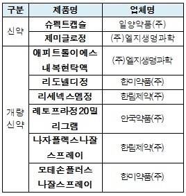 개량신약은 애피트롤이에스 내복 현탁액 등 6개 품목이 허가돼 작년 2개 품목보다 더 늘어났다.