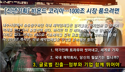 정부의 제약산업 지원정책은 크게 두 가지 방향으로 나아가고 있다. 제약기업의 '맷집'을 키우고 규모의 경제를 이룰 수 있도록 지원하는 것이 하나이고, 다른 나라의 인허가 장벽을 넘어 현지기업과 협력할 수 있도록 돕는 컨설팅이 다른 하나다.