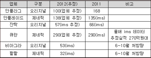 이 품목은 2012년 138억 매출을 기록할 것으로 추정되면서 매출 100억원에 그칠 것으로 예상되는 오리지널 '안플라그'를 추월할 것이 확실시 된다.