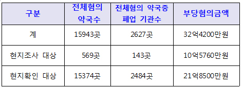 - 약국 1만5943곳 불일치…부당 혐의금액 32억원 수준