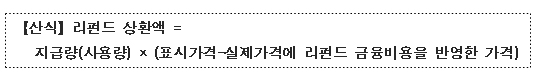 또 '실제가격'의 정의를 리펀드 금융비용을 제외한 가격으로 변경하고, 리펀드 금융비융을 반영한 가격을 별도로 계산하도록 산식을 수정했다.