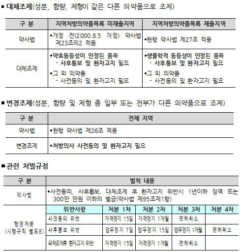 대체조제 시 약사법 규정에 따른 사전동의 또는 사후통보 여부 등 확인하고 약사법 및 건강보험법 위반 사항에 대해 확인서를 받는 순으로 진행된다.
