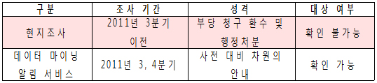 약사회 관계자는 "현지조사는 의약품관리종합정보센터에서 제공하는 데이터 마이닝을 통한 구입·청구 불일치 내역 알림 서비스와는 별개로 진행되는 것"이라고 말했다.