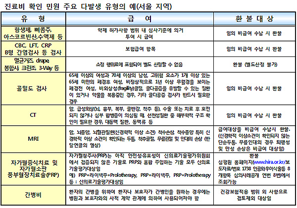 행위료에 포함돼 있어 별도로 산정할 수 없거나 건강보험 적용 범위 밖에 있는 부분 또한 비급여 처리해 환불되는 사례도 있었다.