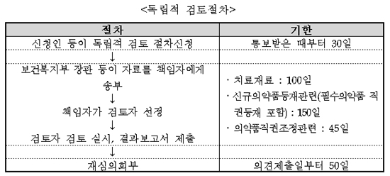 한미 FTA 시행으로 도입된 의약품과 치료재료 '독립적 검토절차'는 정부가 직접 수행하지 않고 연구용역을 발주해 외부 책임자를 지정하는 형식으로 운영될 예정이다.
