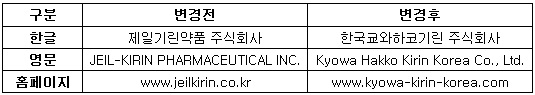 제일기린, 1일부 '한국쿄와하코기린'으로 사명 변경