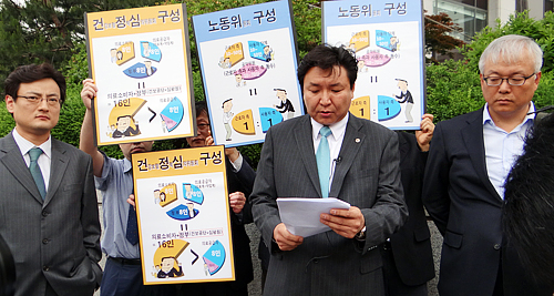송 대변인은 "노사가 1:1 동수로 협의구조를 갖춘 노동위원회와 같이 의약치한 등 각 단체와 정부가 1:1 협의체를 갖춰야 한다"며 "건정심 위원 구성이 제대로 이뤄질 때까지 건정심을 탈퇴하겠다"고 말했다.