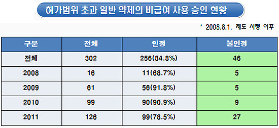 식약청에서 승인하지 않은 적응증으로 사용한 약제 100건 중 85건 가량이 비급여로 사실상 허가를 받은 것이다,