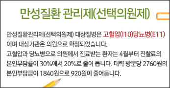 내달 1일부터 고혈압과 당뇨병으로 의원에서 진료받는 환자는 진찰료 본인부담률 20%를 적용 받는다. 현행 30%에서 10% 절감되는 것이다.
