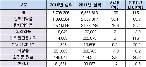 2010년과 비교할 때 원료의약품뿐만 아니라 완제의약품도 높은 성장률을 보인 게 2011년 의약품 수출의 특징이라고 할 수 있다.