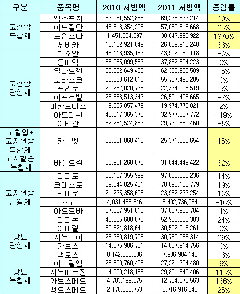 - 고혈압·고지혈증·당뇨약 시장에서 성장률 압도
