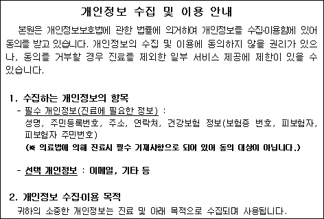 하지만 전화번호, 이메일 주소 등 연락처는 의료관련 법에 의무 기재사항으로 명시돼 있지 않기 때문에 진료목적을 위해 불가피하게 필요한 경우 수집하고 진료목적 범위 내에서 이용 가능하다.