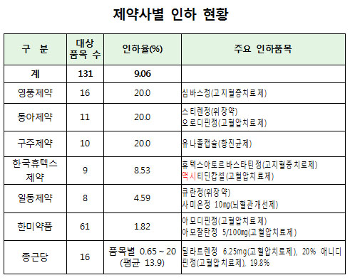 이와관련 해당 제약사들은 약가인하 산정기준이 부당한데다 일부 지역 사건을 전체 품목 약가인하로 이어간다는 것은 가혹하다는 주장을 펼치며 반발해왔다.