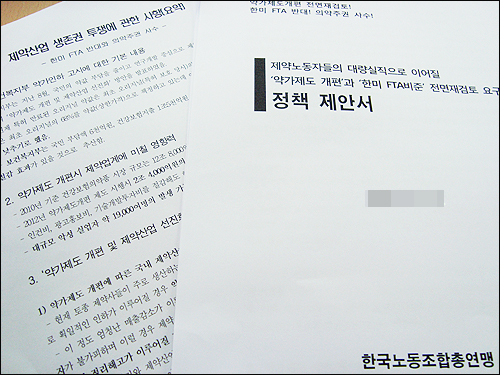 아울러 "한미 FTA는 미국 제약사에게 국내 시장을 헌납하는 것이며, 다국적 기업의 가격결정 독점권으로 인해 중장기적으로 약가가 인상될 가능성이 농후하다"면서 "한미 FTA 비준을 추진하면서 제약산업 선진화를 이야기하는 것은 앞뒤가 맞지 않는 주장"이라고 지적했다.