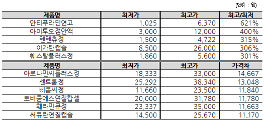 약국별 판매가격 격차 가장 큰 제품은 '안티푸라민'