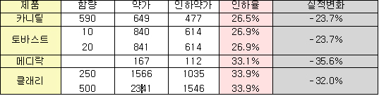 약가일괄인하, 니세틸 60%·안플라그 43% 직격탄