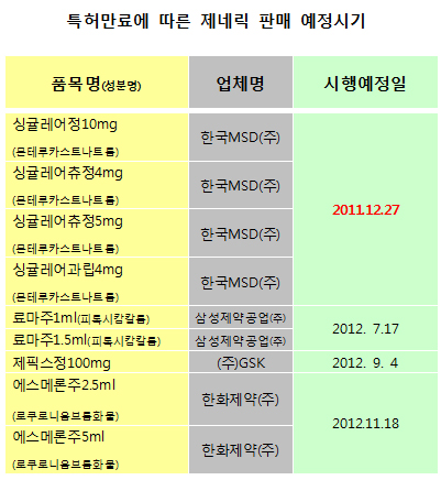 이 가운데 대웅제약 올메텍이 함량별로 새롭게 추가됐으며 한국MSD 싱귤레어 4품목은 올 하반기 특허만료 된다.